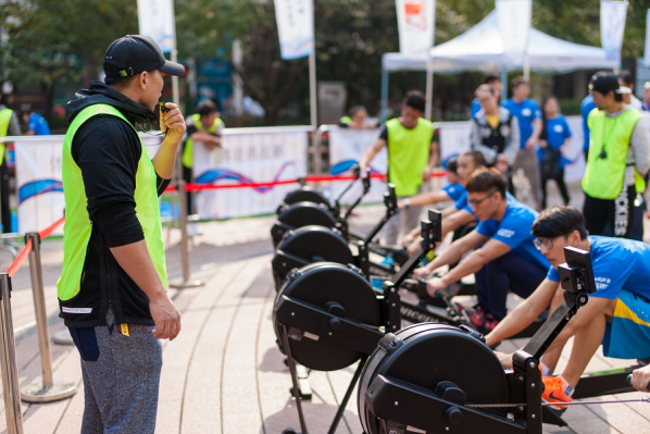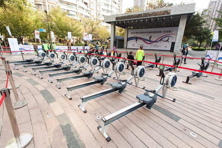2016年长宁区中外市民体能挑战赛(总决赛)回顾 By Concept2 Nov 05, 2016 上海市长宁区中午市民体能挑战赛总决赛在2016年11月5日长宁国际花园打响,划船机项目作为此次比赛的主打项目参与到其中,上午为附近居民及个人参赛选手的挑战。下午为各个区域组队参与的团队比赛。最为激烈的还是划船比赛环节,划船比赛是7个大项中第一个团队10人全部参加的赛事,要求所有队员一起完成1分钟,最后统一计算划行的米数,1分钟的比赛虽然时间比较简短,但是一点不影响比赛的激烈程度! Tags: Concept2, Inc, Indoor Rower, Indoor Racing