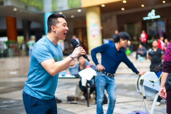 活动一共约有100多人参加,都是与万科有合作关系公司里的员工,比赛为5分钟接力赛,每队5名队员每人划1分钟,5分钟内划行距离最远的队伍获得冠军。